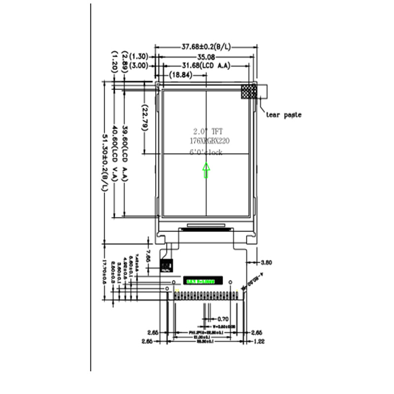 2,0 tums 176 * 220 TFT display modul kan användas för Smartwatch, bärbar, handhållen och medicinsk utrustning.