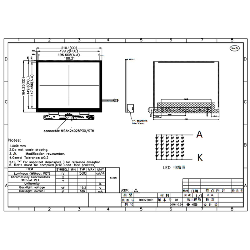 Kingtech 9,7 "1024 * 768 IPS TFT Display power supply is very stable. Cette interface LVDS de 9,7 pouces est prise en charge. De plus, le module TFT de 9,7 pouces a une luminosité de 500 nit, tandis que cet écran de 9,7 pouces est de type full / Free / large angle / IPS. Pour la partie tactile, l'écran tactile capacitif peut également être personnalisé.